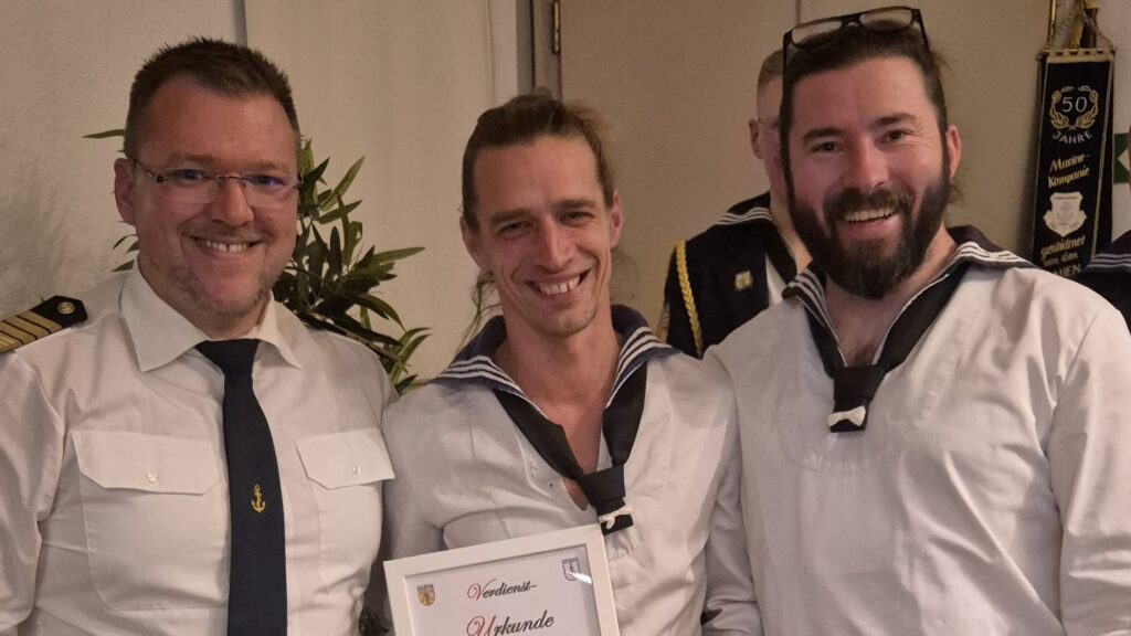 Auf unserer gestrigen Marine Jahreshauptversammlung entschied sich unser 1. Schatzmeister, Stefan Günther, nach insgesamt 19 Jahren im Schatzmeisteramt, dafür, sein Amt niederzulegen und zurück in die Rotte einzutreten. Für seinen langjährigen Dienst für die Kompanie, wurde er von unserem Spieß, Kai Schakau, mit dem Orden für besondere Verdienste der Marinekompanie ausgezeichnet. An seine Stelle tritt der bisherige 2. Schatzmeister, Marian Lampasiak, welcher nun tatkräftig durch Daniel Beckers, als neuer 2. Schatzmeister, unterstützt wird.Vielen Dank Günni für deine langjährige Arbeit für die Kompanie. Nie war irgendetwas an den Kassen zu beanstanden und nie wurde den Hofdamen besser gratuliert. Obwohl du dir letzteres wahrscheinlich auch ohne deine Amt nicht nehmen lassen wirst. Jetzt kannst du die Feste nach langer Zeit wieder ohne Verpflichtungen genießen.
